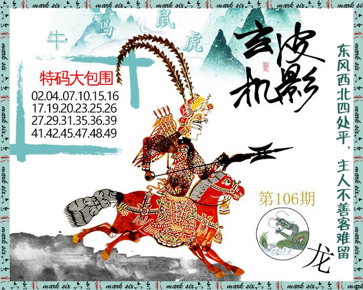 106期正版诗象(开?00) (养野兽宰杀)。一句猜:(西天取经不少它 )中特。提供:(大手大)。 推荐十肖:鸡牛猪马兔狗蛇龙羊鼠 |